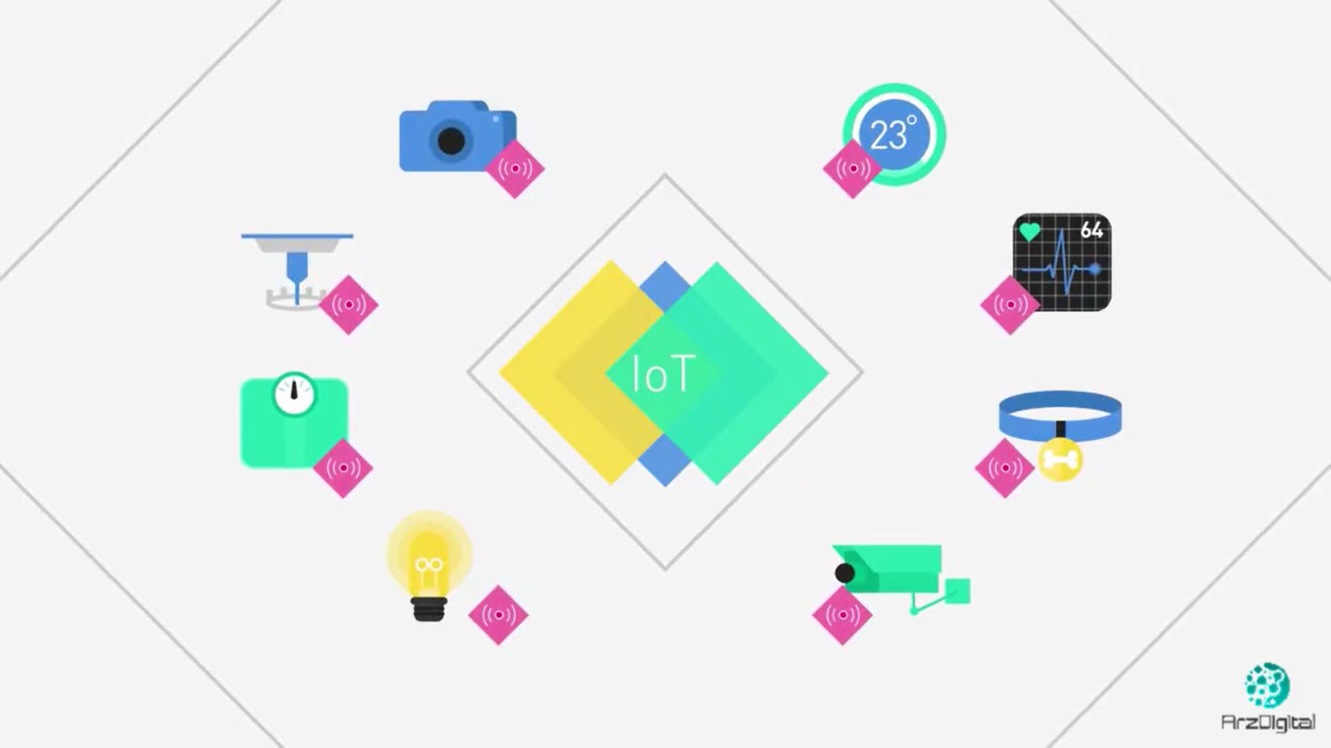 اینترنت اشیا یا به‌اختصار آی.او. تی (IOT) شامل اشیا و وسایلی می‌شود که به شبکه اینترنت متصل شده و برای نمونه توسط برنامه‌های موجود در تلفن‌های همراه قابل‌کنترل و مدیریت‌اند. به زبان ساده‌تر، اینترنت اشیا به معنای ارتباط حس‌گرها و دستگاه‌ها با شبکه است که اعضای آن می‌توانند با یکدیگر و با کاربرانشان تعامل داشته باشند. در این ویدیو بیشتر با مفهوم اینترنت اشیا و نحوه کار آن آشنا می‌شویم.